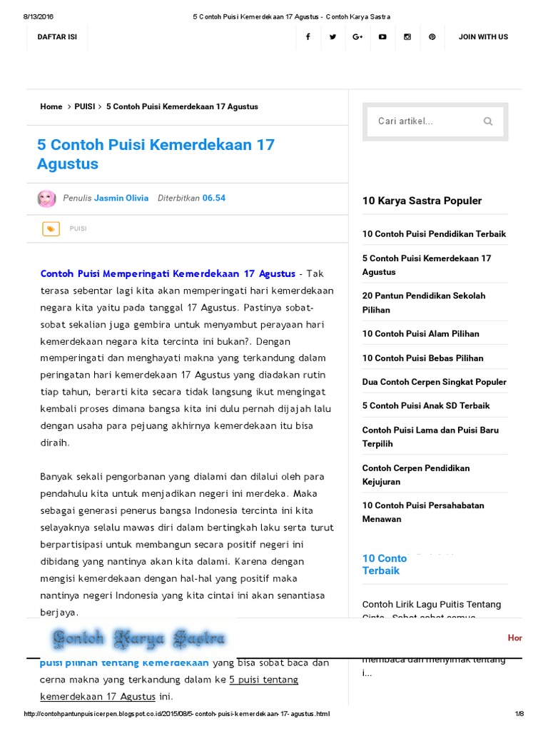 Puisi pendek anak sd kelas 6 sekolahku beribu cerita kau berikan, dalam suka maupun duka, nanti kelak pasti kurindukan, rindu di sepanjang usia. Kumpulan contoh puisi anak sekolah sd, smp dan sma berbagai tema apakah anda sudah pernah mendengar puisi anak sd? (siswa kelas vi sdn pulau tambak tahun 2010). Ciptaan tuhan yang maha esa patut kita syukuri karena dengan segala. Rangkuman materi pembelajaran sd kelas 5 tema 4 bahasa indonesia soal pantun dan syair. Banyak anak memilih tema alam karena lebih mudah untuk diamati dan diungkapkan. Puisi ini merupaka tugas anak pada mata pelajaran ips tentang perjuangan yang ada di semester 2. Ada puisi anak bertema alam, lingkungan, keluarga, kesehatan, keindahan alam, dan budi pekerti. Ada juga beberapa contoh puisi yang dapat membantumu saat mengajarkan si kecil. Berikut contoh contoh puisi anak sekolah dasar sd.