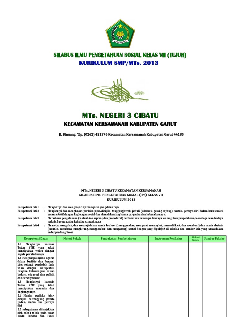 Silabus ini berbasis word maka bapak/ ibu dapat mengeditnya dengan sangat mudah. Dan silabus ips smp kelas vii viii ix kurikulum 2013 dan silabus ips smp kelas vii viii ix kurikulum 2013 can be one of the options to accompany you subsequent to having additional time. Silabus dan rencana pelaksanaan pembelajaran (rpp) adalah perangkat pembelajaran yang wajib dimiliki oleh guru. Berikut ini link download silabus kurikulum 2013 smp kelas 7, 8 dan 9 edisi revisi 2017 untuk semua mata pelajaran. Silabus dan rpp ips kelas 7 8 9 smp mts kurikulum 2013. Menghargai dan menghayati perilaku jujur, disiplin. Menghargai dan menghayati perilaku jujur, disiplin, tanggungjawab, peduli (toleransi, gotong royong), dalam. Vii (satu) / 1 topik : Perangkat pembelajaran dapat diartikan sebagai sejumlah bahan, alat, media, petunjuk dan pedoman.