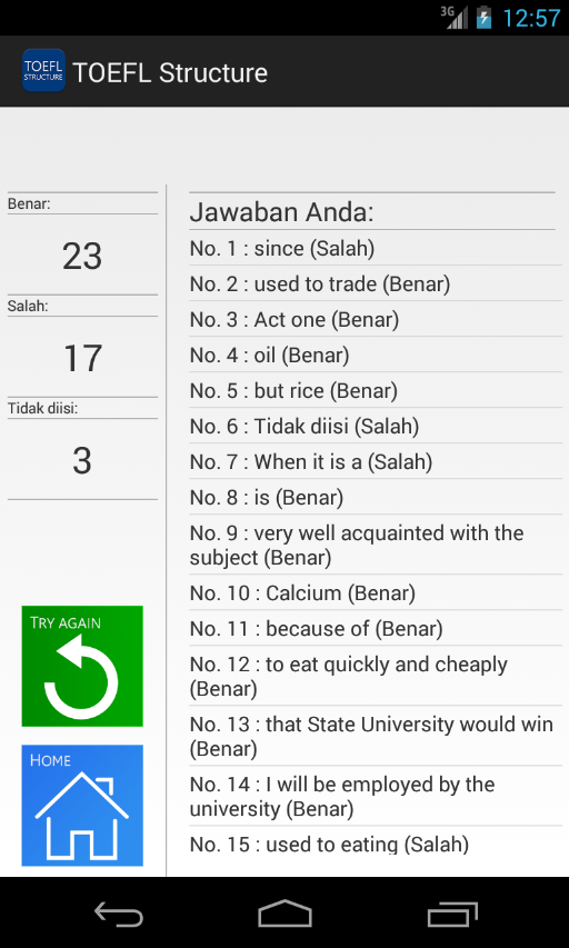 By yec / simulasi toefl, toefl / 21 comments / 1 minute of reading. Aplikasi ringan untuk latihan structure toefl® itp/paper based. Latihan soal dan pembahasan toefl : Hal ini tidak sepenuhnya benar, bagian ini menjadi biasanya menjadi yang paling sulit dikarenakan kurangnya latihan. Bagi sebagian besar orang, bagian yang paling sulit dari tes toefl® itp/paper based adalah di bagian 2: Tips & tricks mengerjakan toefl itp: Latihan soal toefl structure ini terdiri dari 15 soal dalam bentuk multiple choice. Dear reader, hari ini saya akan mengulas tentang contoh soal toefl. Download soal tes toefl dan pembahasan jawaban structure.pdf.