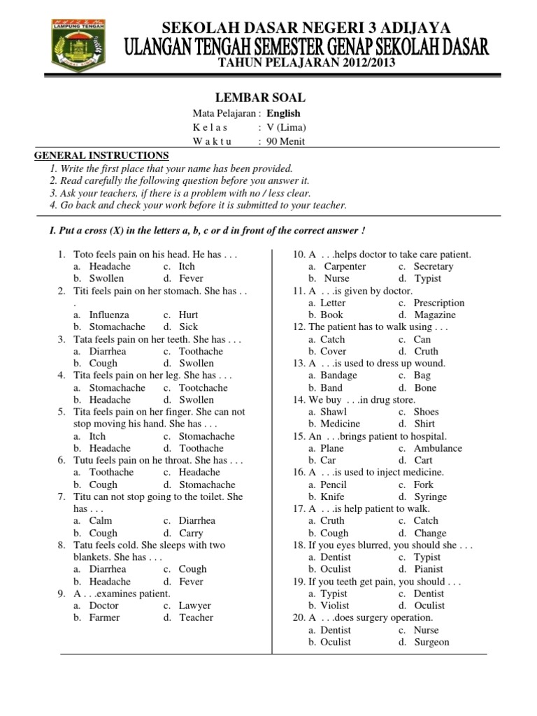 Soal uts bahasa inggris smp semester genap tahun ajaran 2017/2018 kelas vii. Kumpulan soal bahasa inggris smp kelas 7 semester 1. Bahasa inggris latihan 1 (94 kb) terdiri dari 25 soal pilihan ganda dan 5 soal uraian demikian kumpulan soal uts kelas 7 semester 1 ini kami sajikan. Senin,25 agustus 2013 inilah contoh soal bahasa inggris untuk mid semester yang telah dibuat oleh salah satu guru bahasa inggris smp n 1 kayen, lucky aprilia,s.pd. Preview soal acak ujian tengah semester 1 ganjil (uts / mid) bahasa inggris sd / mi kelas 1. Soal pts/uts bahasa inggris kelas 7 (vii) semester 1 smp/mts kurikulum 2013. Ada beberapa materi yang menyesuaikan dengan syllabus yang ada, yaitu perihal the simple past tense, narrative text, recount text, asking for invitation, reported speech dan passive voice. Soal mid bahasa inggris kelas 7 semester 1; Maka kami akan memberikan contoh soal bahasa.