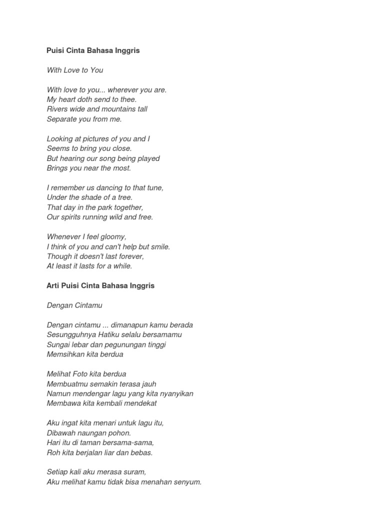Selain unik, kamu juga bisa turut serta berperan melestarikan bahasa. Kusebut kau sayang dalam irama doaku. 11 sep, 2021 posting komentar untuk merayakan kemerdekaan, berikut puisi bertema kemerdekaan yang ditulis oleh para penyair indonesia. Orang makin suka bertutur maupun berbicara dalam bahasa daerah secara tidak ragu, dan tidak malu. Kau yang kusayang bak pesan cahaya yang tersimpan. Dalam puing senja kusebut namamu. Berikut ini adalah kumpulan puisi pendek tentang cinta dalam bahasa mandarin. Harry potter and the half blood prince). 11 puisi menyentuh hati wanita.