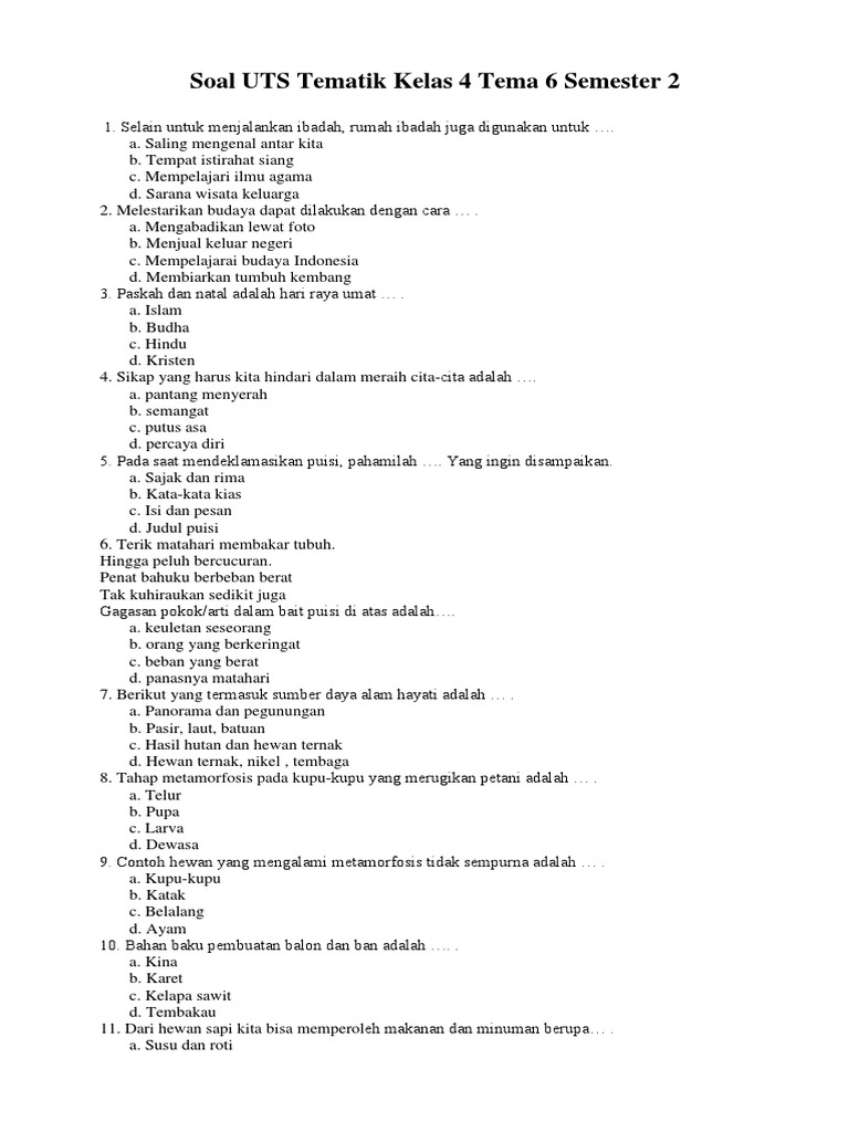Soal Soal Tematik Kelas 4 Tema 8 Semester 2.