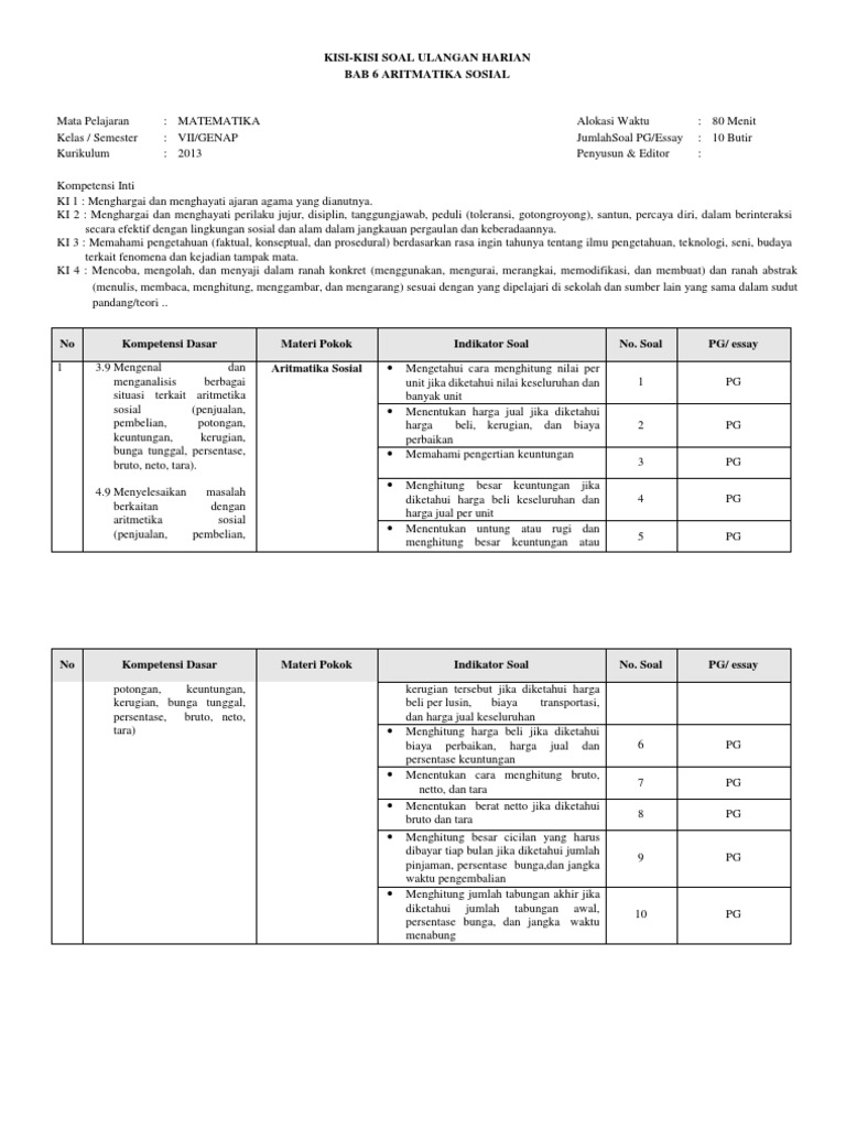 Gunakan bolpoint untuk menjawab pertanyaan yang ada 3. Contoh soal aritmatika sosial materi matematika. Aritmatika sosial beserta contoh dan penyelesaiannya. Aritmatika sosial sk dan kd materi latihan soal 2. Aritmatika sosial merupakan meteri yang ada di dalam bab pelajaran matematika kelas 7 smp/mts kurikulum terbaru (2013) materi ini mencakup laba (keuntungan), tara, neto , kerugian, persentase, diskon (rabat), bunga majemuk, hutang, pajak dan sebagainya. Pada soal pilihan ganda, a. Berat karung dan pupuk yaitu 50,8 kg disebut bruto (berat kotor). Pada pertemuan ini kita membahas kumpulan contoh soal dari materi aritmatika sosial. Untung yang didapat adalah rp.